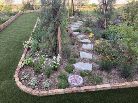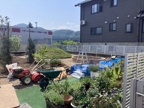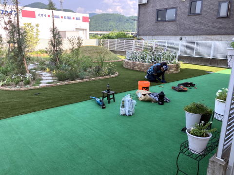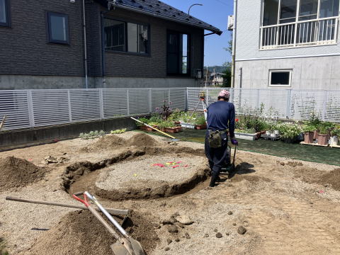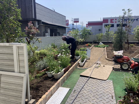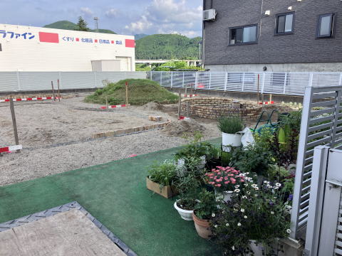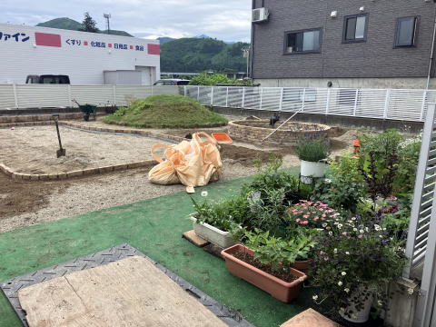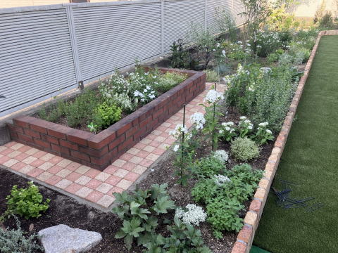 作業が進むとともに、施主様がお気に入りの草花を沢山購入してくださったので